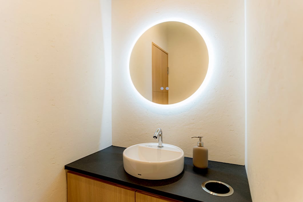 また、診療前後に身だしなみを整えていただけるパウダールームも完備しており、どなたでも快適にお過ごしいただけます。