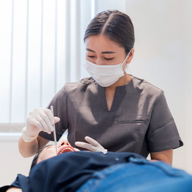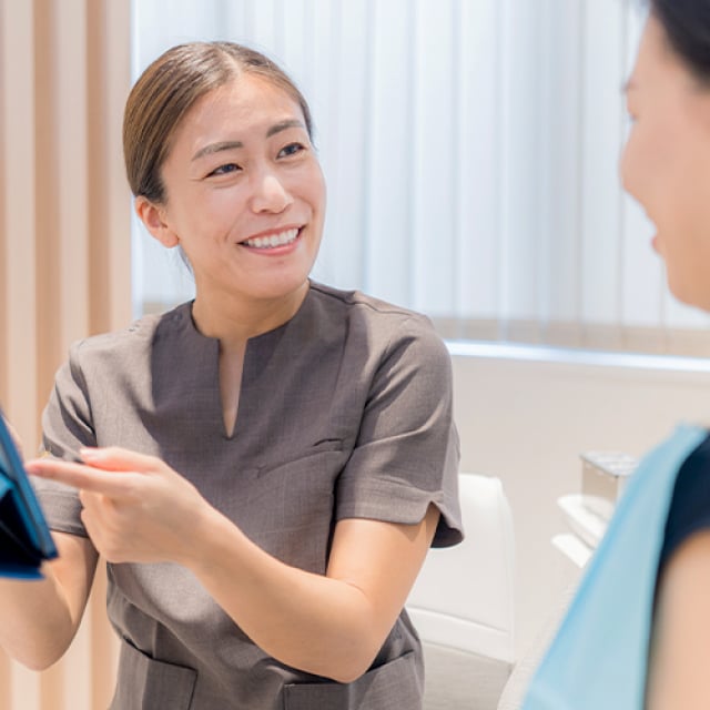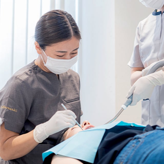 歯や歯茎にやさしい薬剤を使用しています。「痛い」「しみる」といった不安に配慮し、できるだけ負担を抑えるよう努めています。