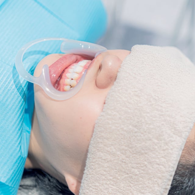 歯科医院で専門スタッフが行うオフィスホワイトニングです。